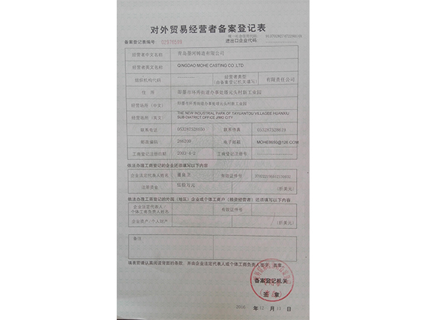 • 對外貿易經(jīng)營者備案登記表